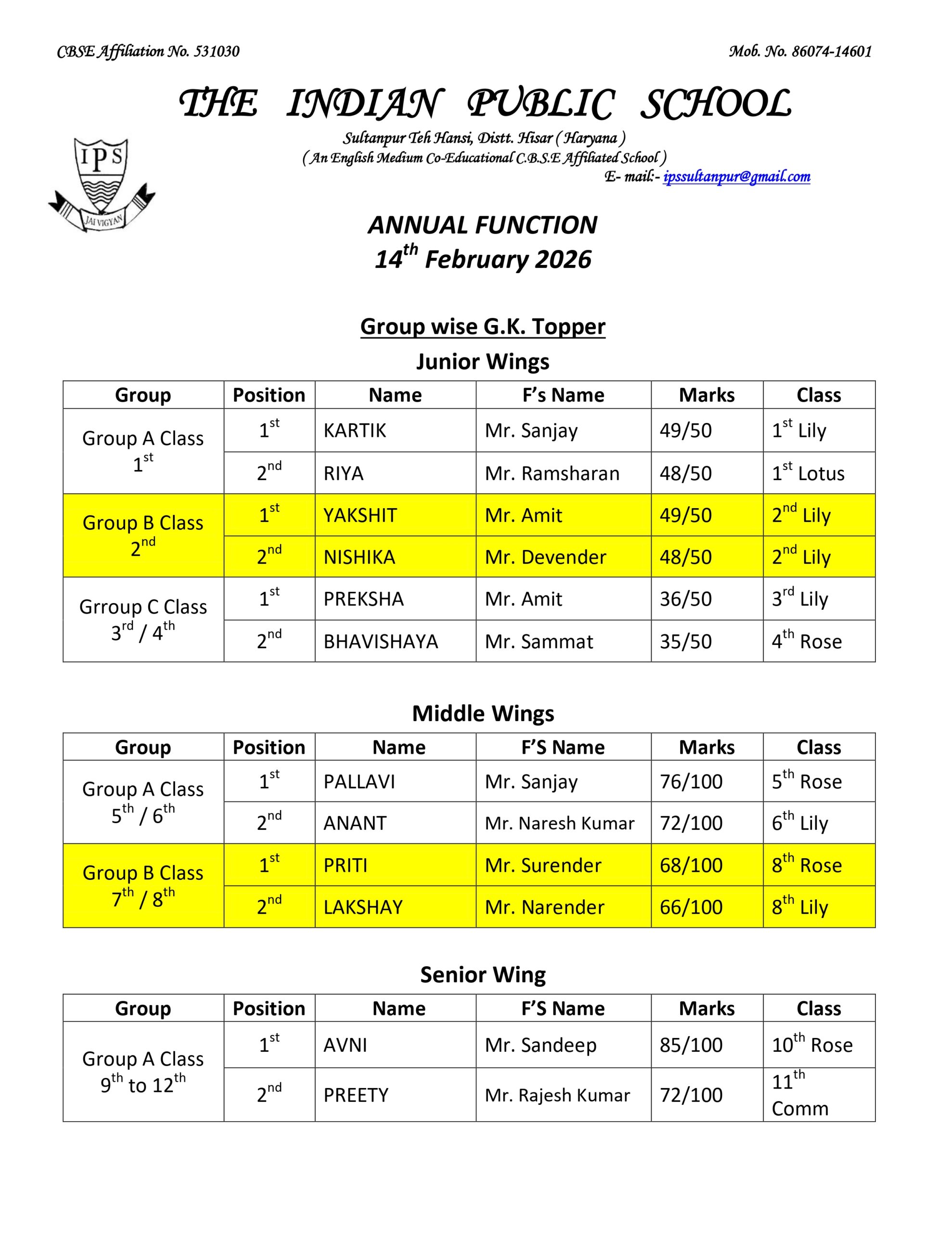 IPS Annual Prize Distrubution Feb 2026